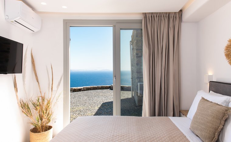 Caval Residences consists of two independent residences, Superior Residence | Panoramic Sea & Sunrise View [50 m²] and Deluxe Residence | Panoramic Sea & Sunrise View [70 m²], offering everyone a unique accommodation experience in the spectacular natural landscape of the Caval area at the foot of Mount Tsiknia. Privacy, comfort and tranquility combined with breathtaking views and plenty of fresh, clean air are the best recipe for an unforgettable stay on this magical Cycladic island.